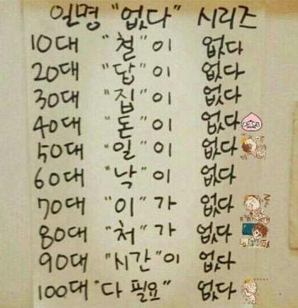 어느 날 우연히 지인에게 카톡으로 받아본 '없다 시리즈'', 재미있는 유머라 하기에는 나름 생각해 볼 내용이 있었다.
