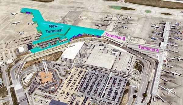 위 사진 상단 좌측에 보이는 터미널 C는 전체 면적이 약 85만 스퀘어피트에 달하고, 보안 검색대는 하나로 통합되며, 매장과 식당 공간만 4만 스퀘어피트가 확보됩니다. 지금 샌 안토니오 공항 크기 2배가 훨씬 넘는 대공사 입니다.