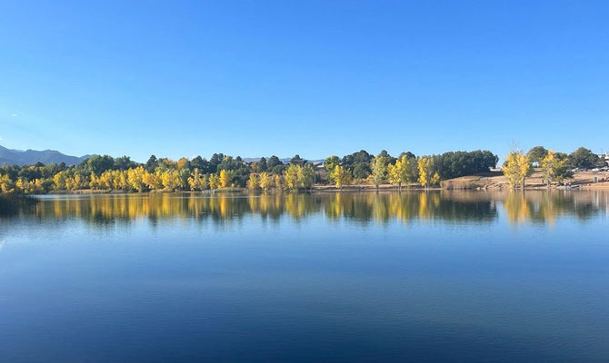 호수를 따라 걸으면 멀리 파이크스 피크(Pikes Peak)가 시원하게 보이는데, 가슴이 뻥 뚫리는 기분이 듭니다.
