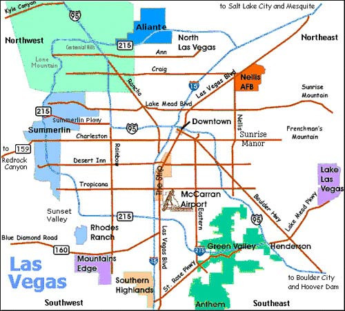 Harry Reid 국제공항(옛 McCarran 공항... 이름은 왜 또 바꾼건지)은 스트립 바로 남쪽에 붙어 있다.비행기 착륙할 때 창밖으로 카지노 네온사인이 보일 정도다.