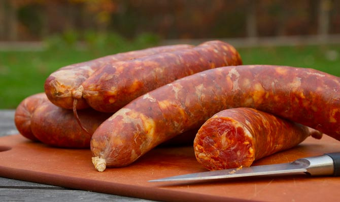 기본적으로는 돼지고기를 잘게 다져서 마늘, 파프리카, 칠리, 소금, 향신료를 섞은 뒤 케이싱에 넣은 소시지인데, 스페인식은 '건조·훈제형', 멕시코식은 '조리형'으로 나뉩니다.