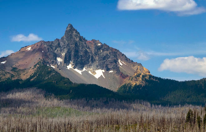오레건의 Mt. Washington은 땅 위에서 꽂힌 검은 창처럼 보이는 독특한 화산 봉우리다. 정상부가 매끄럽지 않고 뾰족하게 솟아 있어 멀리서 보면 꼭 누군가가 칼로 자른 흑빛 바위 조각을 세워둔 듯한 느낌을 준다.