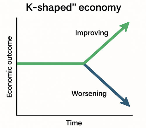 요즘 미국 경제 돌아가는 거 보면, K자형 경제(K-shaped economy)라고 부른다고 하네요.