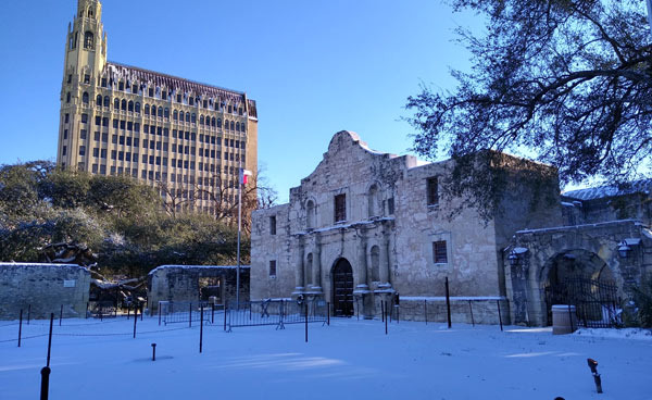 바로 알라모에 눈이 쌓였던 그 겨울이다.텍사스에서 눈도 드문데, 그것도 샌안토니오 한복판 그것도 알라모에 눈이라니.