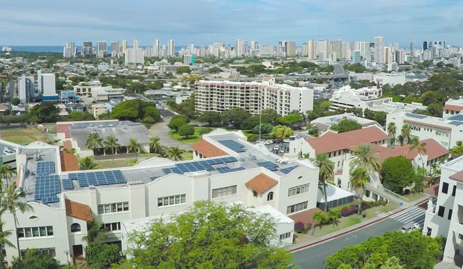캠퍼스는 호놀룰루의 주거 지역에 위치해 있어 조용하고 안전한 환경을 제공합니다. 특히 다이아몬드 헤드(Diamond Head) 인근에 위치해 있어 자연경관이 뛰어나며, 소규모 캠퍼스 특유의 친밀한 분위기를 느낄 수 있습니다. 학생들은 학업과 함께 다양한 봉사활동과 커뮤니티 프로그램에 참여할 수 있으며, NCAA Division II에 속한 Silverswords 스포츠 팀과 학생 클럽 활동도 운영되고 있습니다.